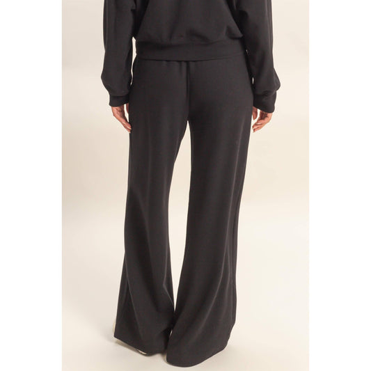 Black - Ribbed Wide Leg Drawstring Waist Sweatpants