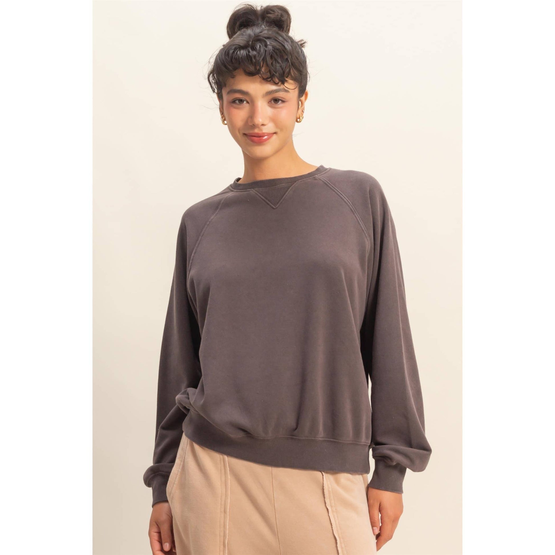 Experience comfort and style with this mineral-washed crew neck sweatshirt.