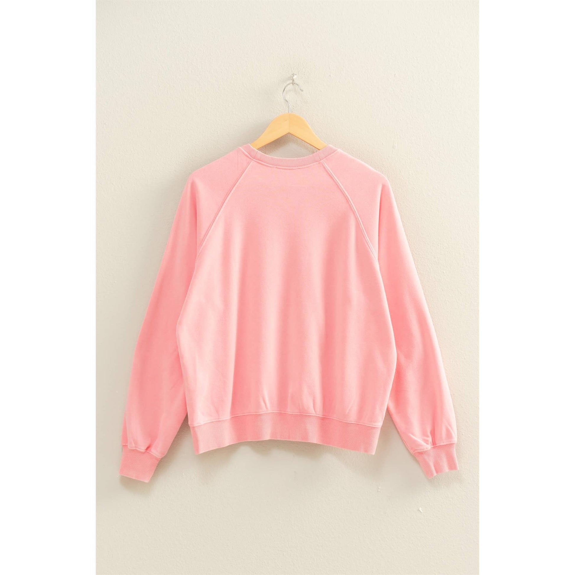 Pink Mineral Washed Crew Neck Raglan Sleeve Sweatshirt
